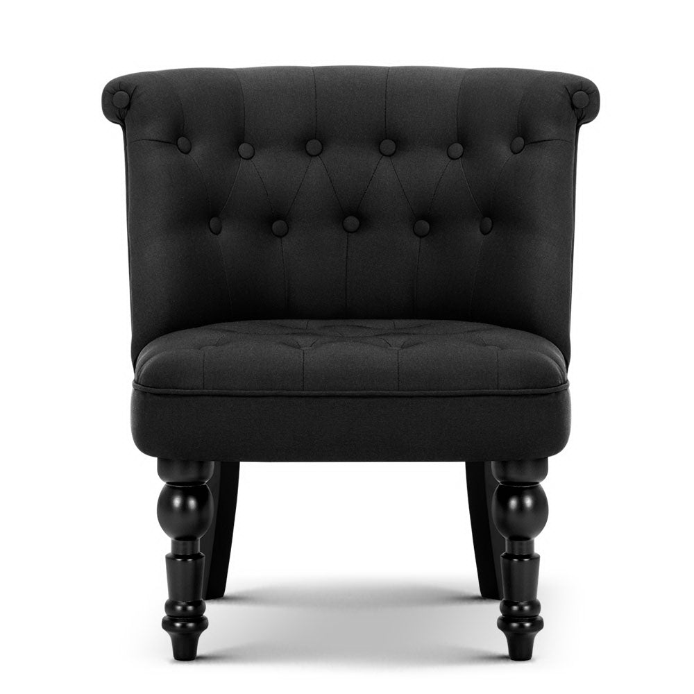 A chair full of charm and character. Reminiscent of 18th century furniture décor that graced many a provincial home in France, the Lorraine Chair is a contemporary interpretation of this period design. Updated with delicate upholstered faux linen fabric, the Chair is peppered with lovely tufted buttons on its wide arch back for a look that is both alluring and classic. The generous padded seat offers exceptional comfort whilst the intricate front legs and curved back legs provide sturdy support with artistic flair. Not least, the rubber base back legs are extremely floor-friendly. Enjoy this piece de resistance in your elegant hallway, delightful living room or perhaps right beside your bed as an exquisite reading chair. Whatever’s your fancy, the Lorraine Chair certainly deserves a hallowed place in your home.